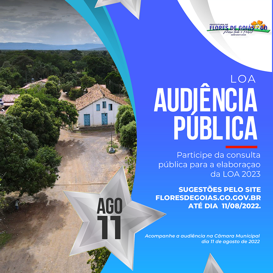 A PREFEITURA MUNICIPAL DE FLORES DE GOIÁS/GO, por meio da SECRETARIA MUNICIPAL DE ADMINISTRAÇÃO convoca população para audiência Pública - LOA/2023