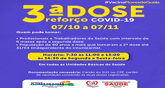 Agendado período para tomar a 3ª Dose do REFORÇO da Vacina contra o Covid-19